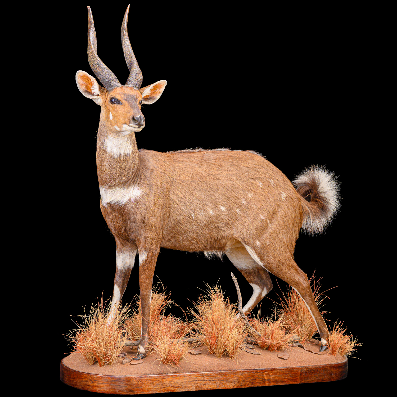 Bushbuck taxidermy is the art of preserving the Bushbuck’s skin and other body parts to produce lifelike sculptures for display, either at home as a hunting trophy or in museums for educational purposes. Skin is preserved and mounted on an artificial armature to display the specimen.
